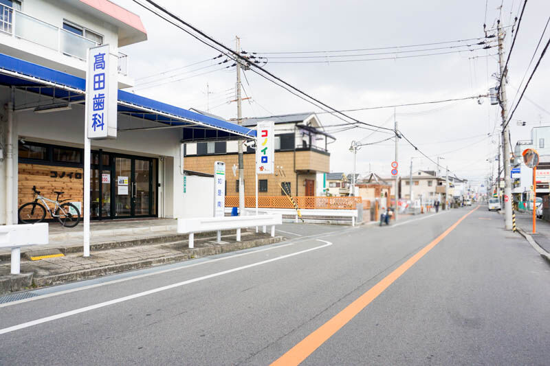 反対方向に行くと、フライショップ正田やサイクルベースあさひ、コイン式マッサージチェア店「もみほぐし せーどこ」ができた登美の里町のマルヤスがある、府道132号線との交差点に出ます。