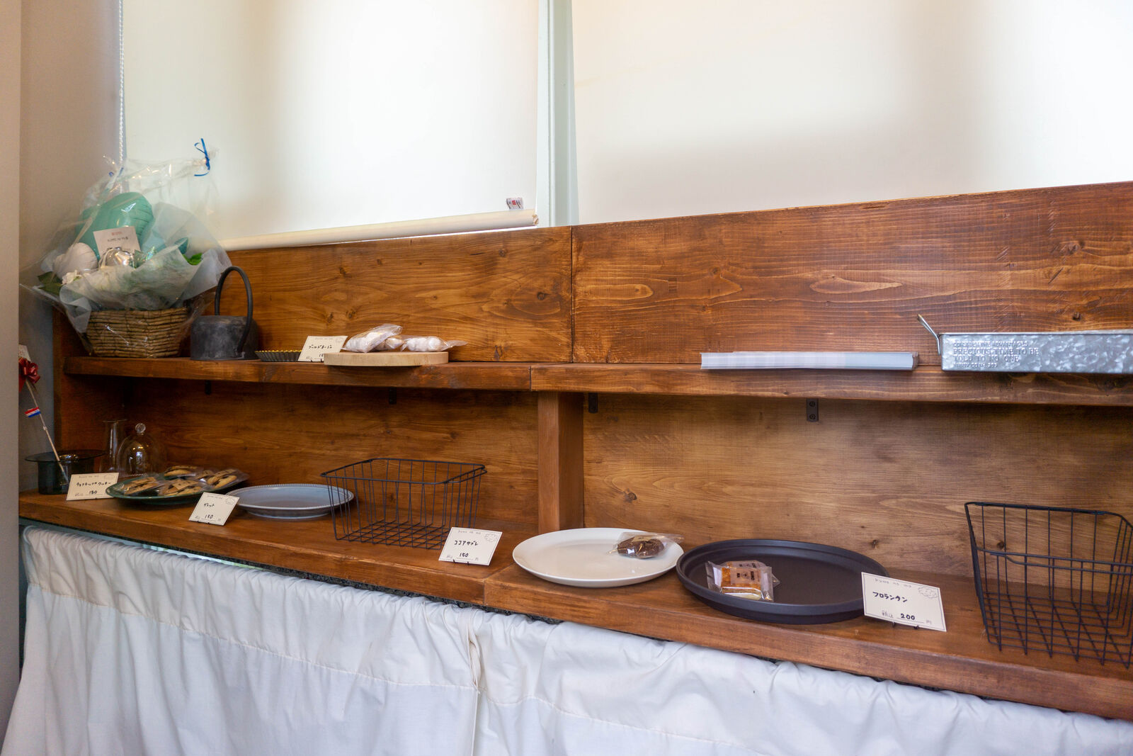 店内はウッディなナチュラルテイスト。焼き菓子も数種類あります。