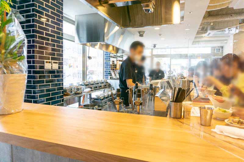 カウンターは対面で調理場があり、感染対策用のパーテーションが各所に設置されていました。