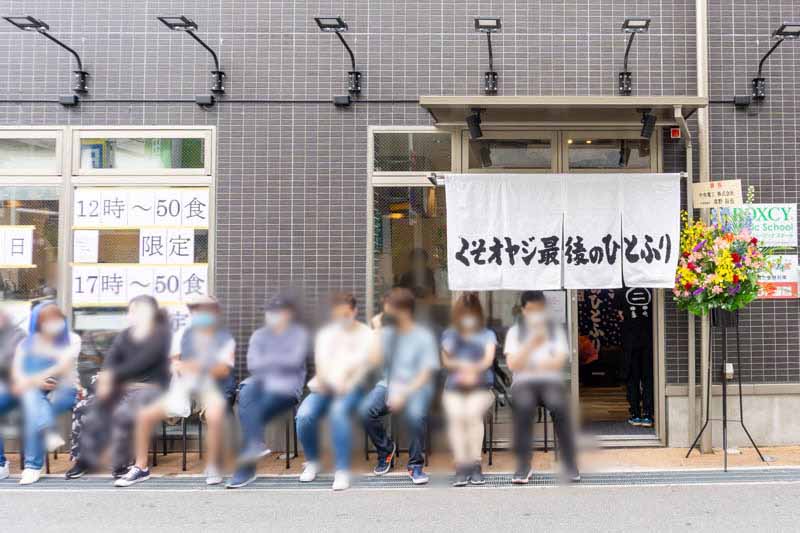 阪急高槻市駅ちかくにつくってたラーメン店「くそオヤジ最後のひとふり」がプレオープンしてる。グランドオープンは11日。行列すごい