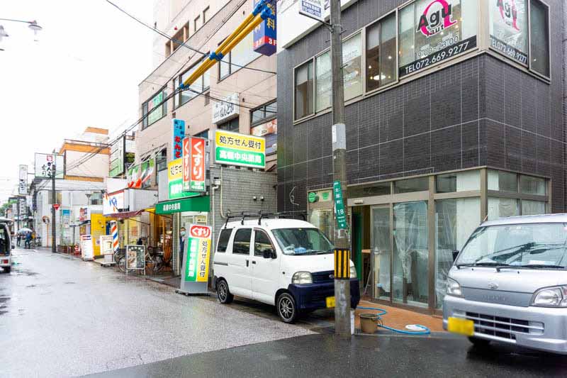 反対方向に行くと、高槻センター街の入り口、信号を渡ると阪急高槻市駅があります。