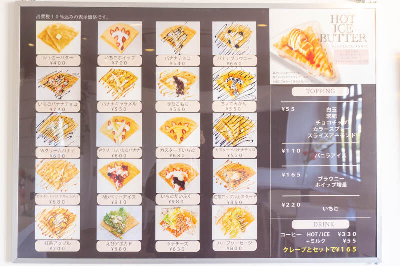 カスタマイズもできますし、デザート系からおかず系のクレープまで種類が豊富。