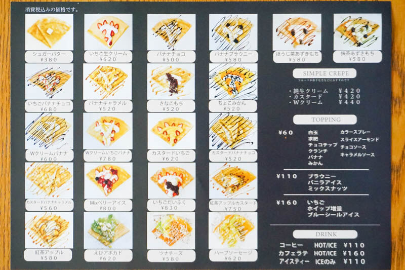 クレープと一緒に頼みたいドリンクなども以前と変わらずありますね〜。