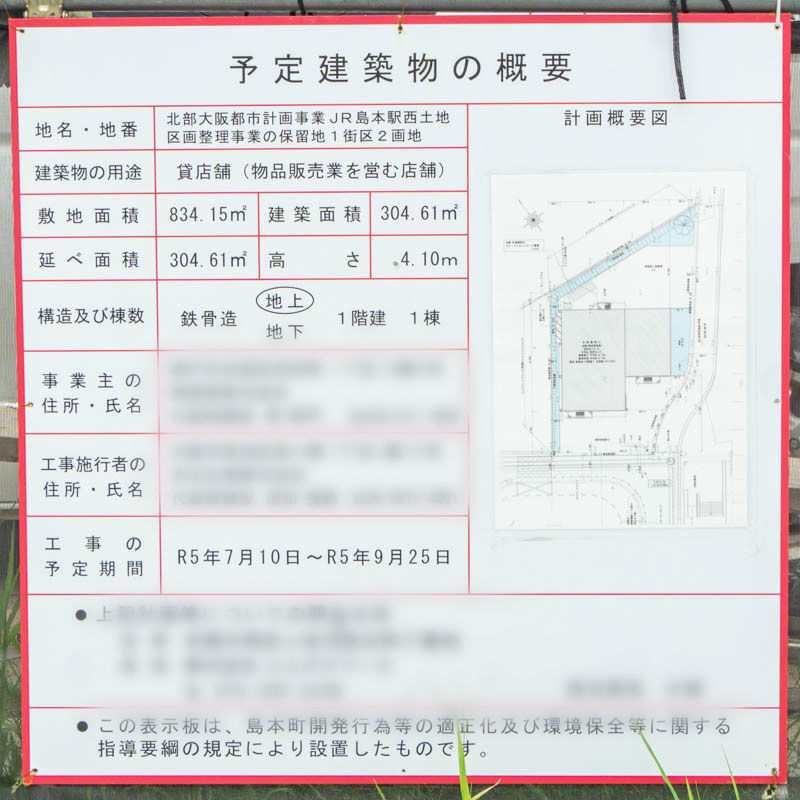 JR島本駅前につくってる物販店舗はローソンみたい。10月5日オープン予定