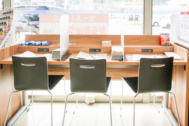 イートインできるスペースもあって、各席にコンセントがあるのも嬉しいですね。