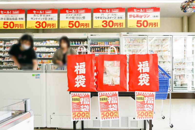 オープンから8月7日までの3日間、数量限定で福袋があったり、パンやおにぎり、スイーツ等の商品がセール価格になっているとのこと。