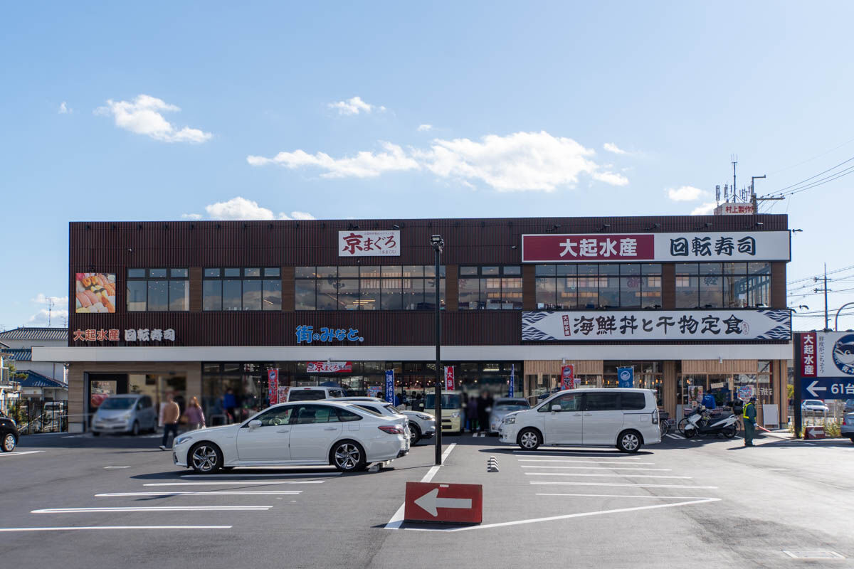 170号線ぞい辻子に作っていた鮮魚店「街のみなと」がオープンしてる。大起水産初の大規模複合店舗