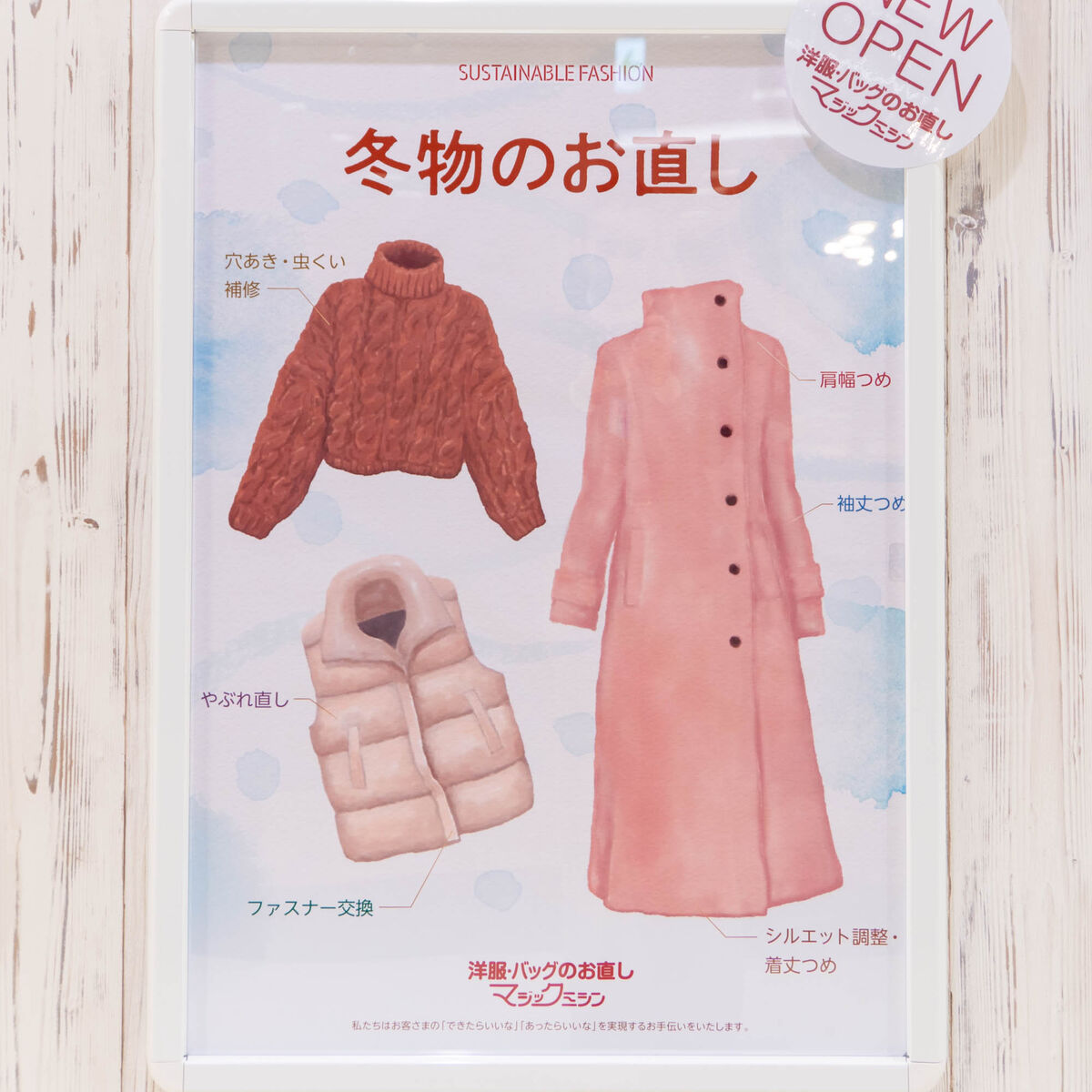 「マジックミシン」は、全国に約400店舗展開する、洋服・バッグのお直しのお店。高槻には2店舗目です。