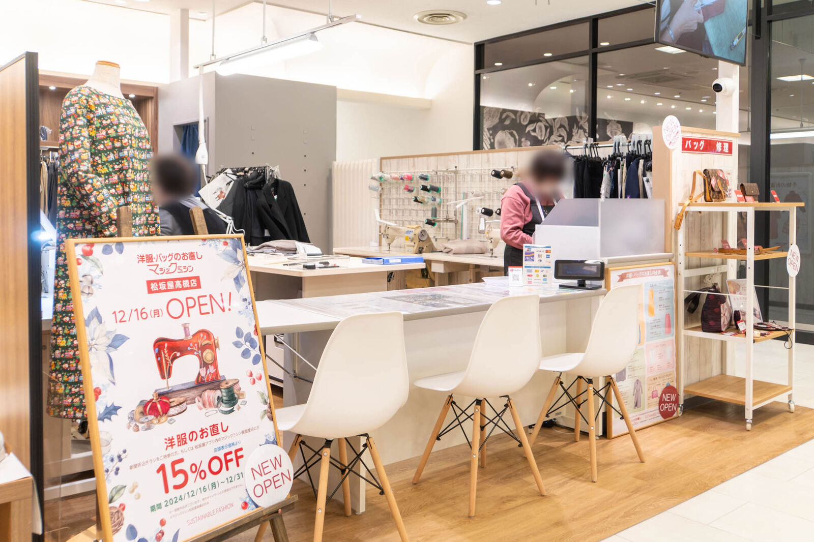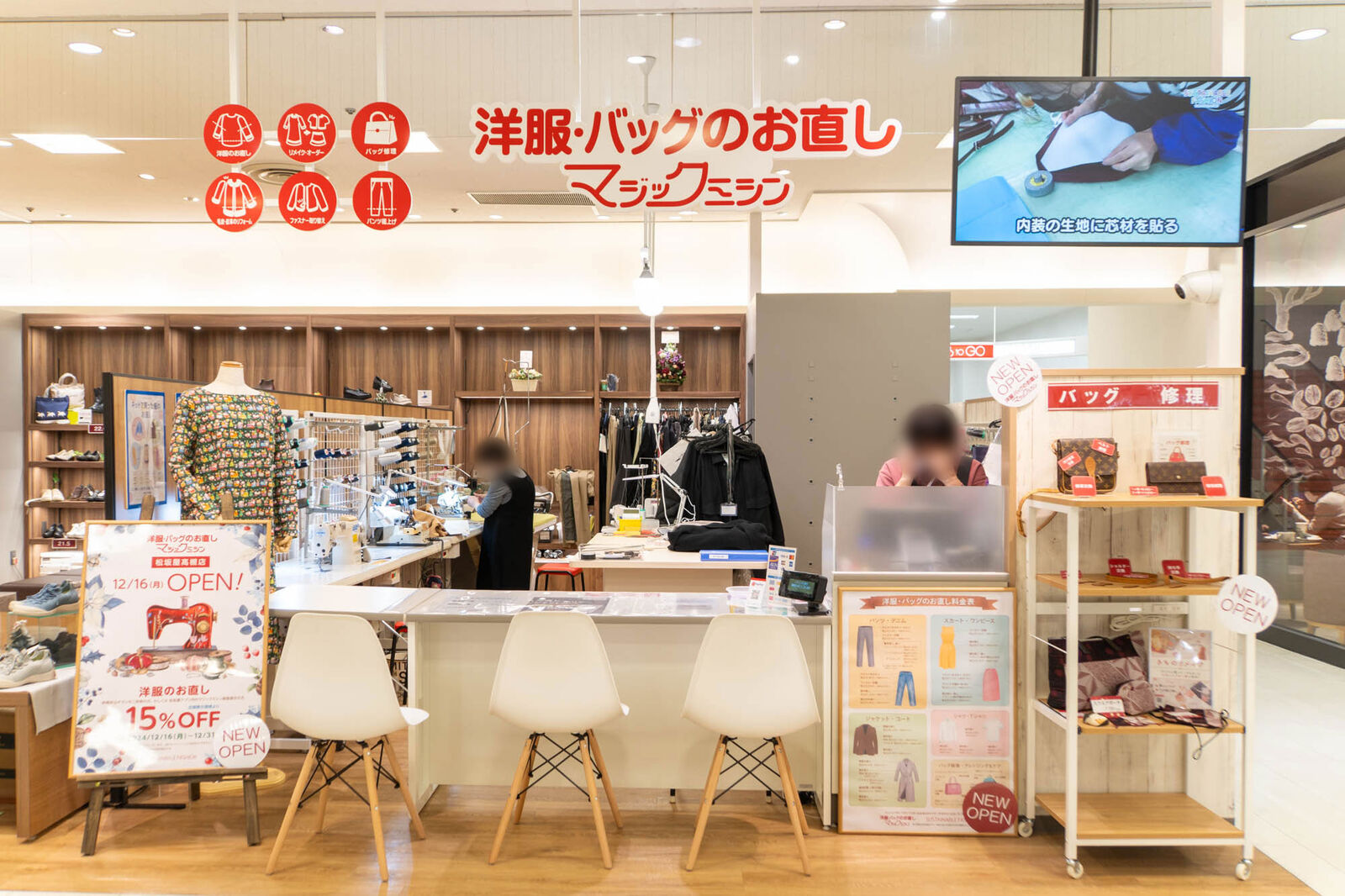 松坂屋にオープンした「洋服・バッグのお直し マジックミシン」はこんな感じ