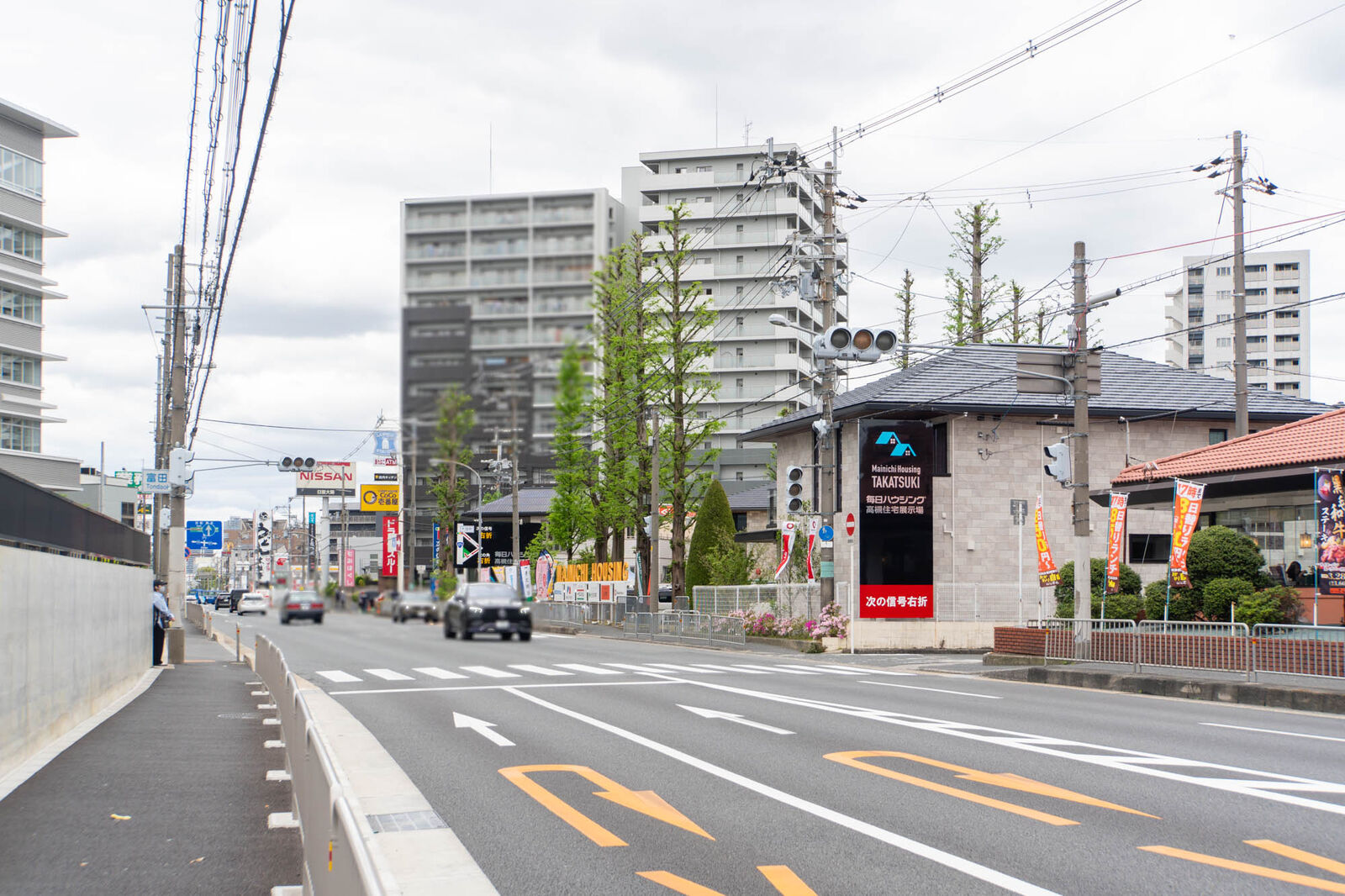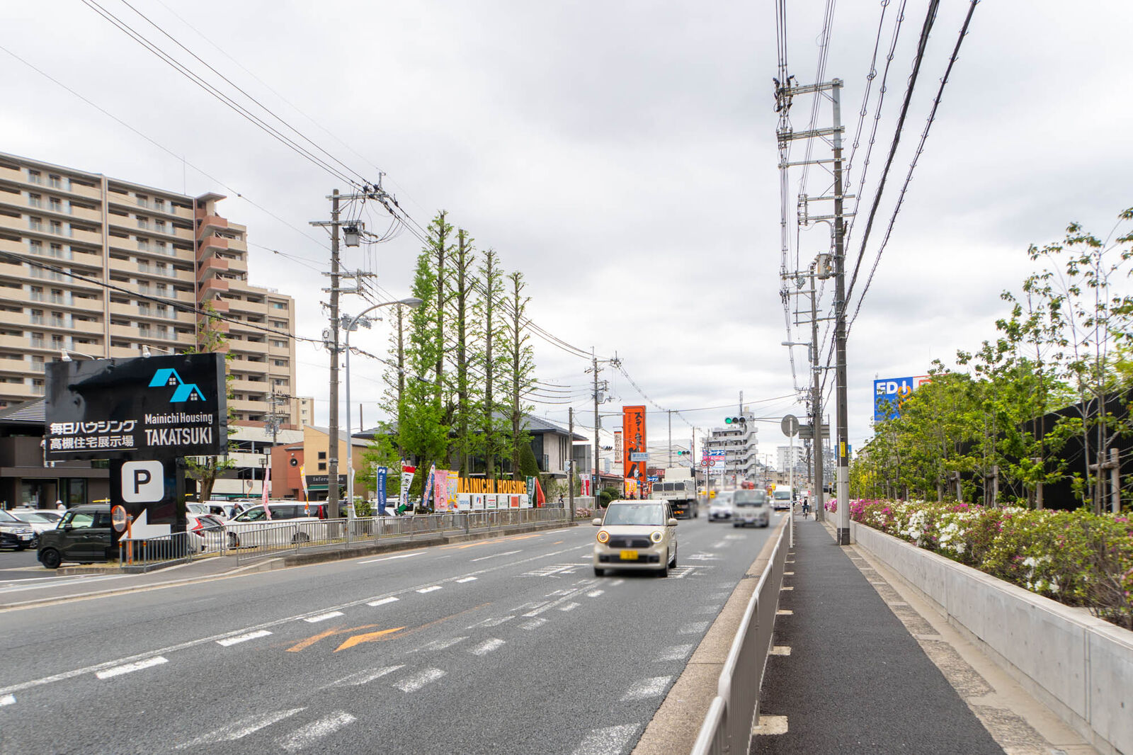 こっちに行くと、エディオンや万代などがあり、茨木方面。