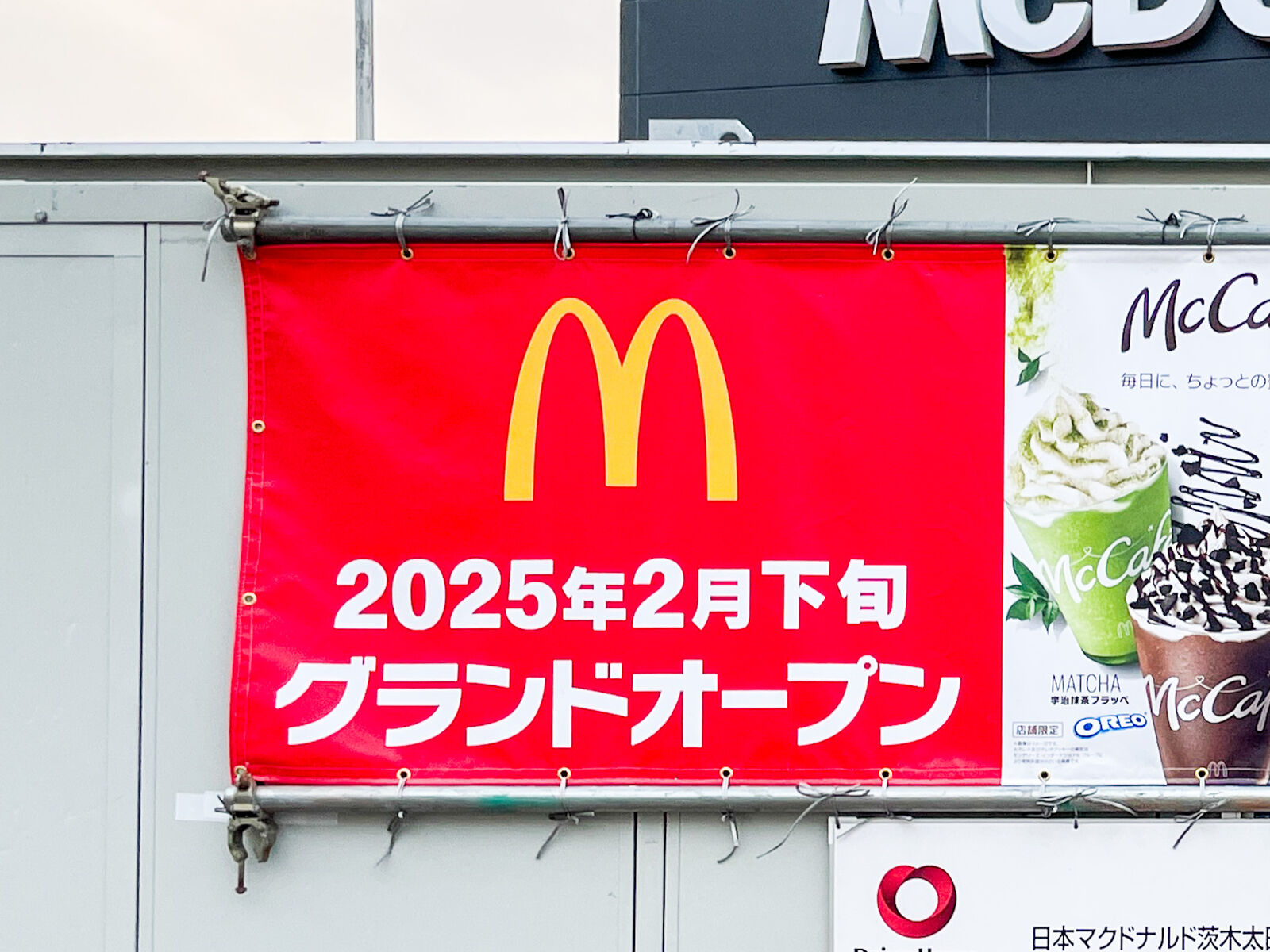 【追記:オープンは2月26日】イオンタウン茨木太田ちかくにつくってるマクドナルドは2月下旬オープン予定。建物できてきてる