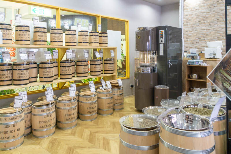 店頭には約50種類のコーヒー豆が用意されており、好きな豆をその場で好みの加減で焙煎してくれます。