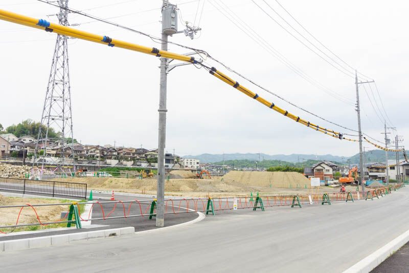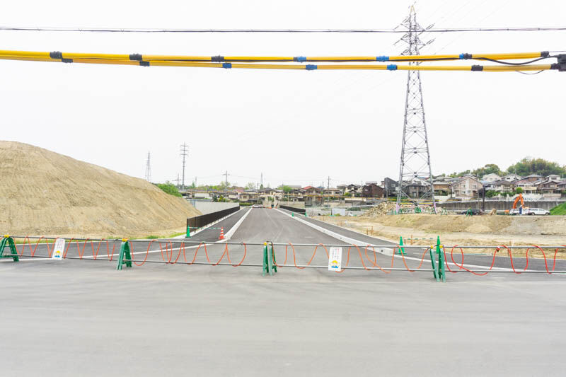 その道を挟んだ隣の土地には、株式会社テクノ高槻によるエアーポンプ、医療機器等の製造工場が建設予定。