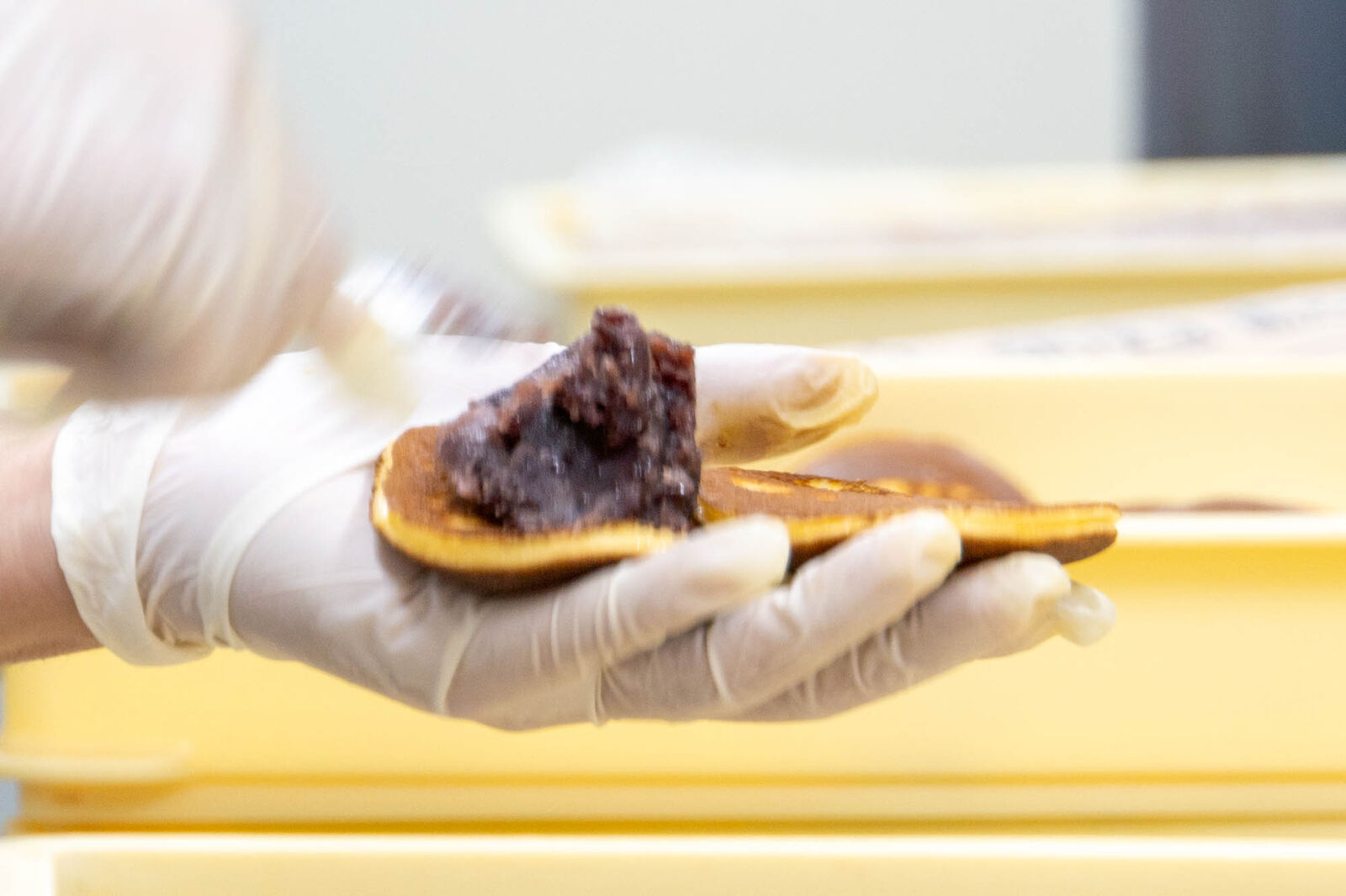 あっという間に生地が焼け、あんこをささっとテンポよく挟んでいく様子はまさに職人技!