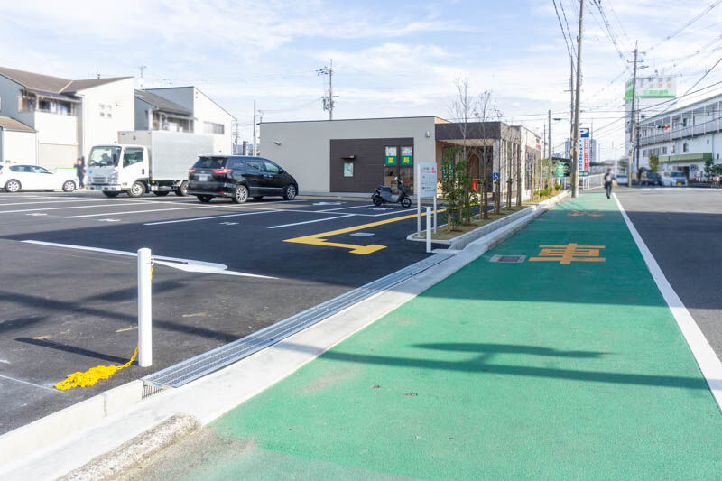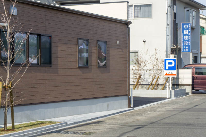 駐車場の入り口は店舗向かって左側の一箇所のみ。ちなみに20台停められるとのこと。