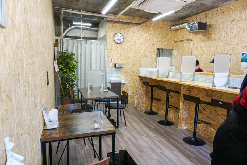 店内でも飲食スペースがあり、テーブル席とカウンター席、いずれもパーテーションで区切られています。