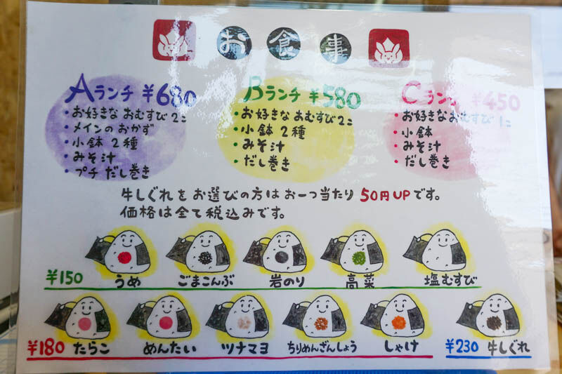 ランチは3種類で、おむすびは単品で購入も可能。