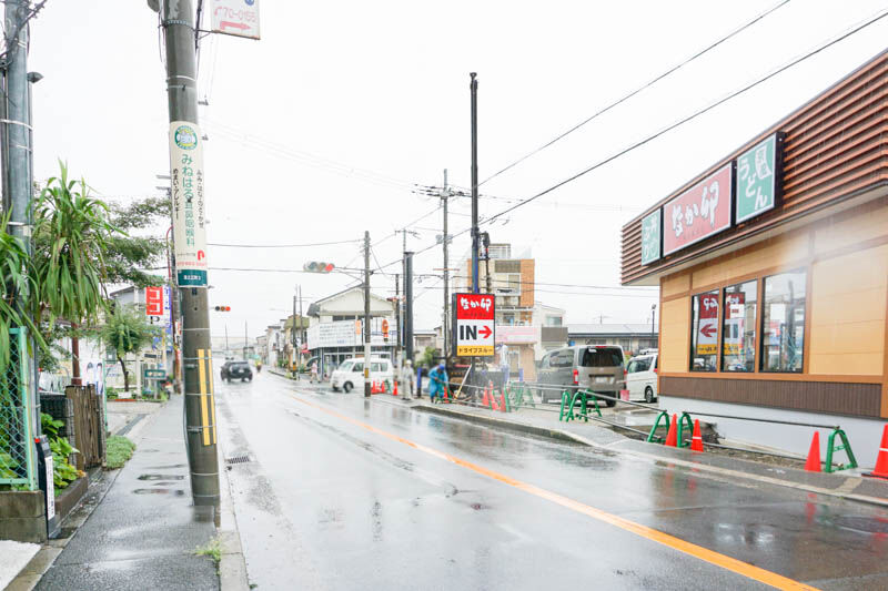 目の前は府道132号線で、こっちに行くと津之江郵便局があり、芥川をこえるとセブンイレブン、そのまま進むと府道16号線がある方へ。