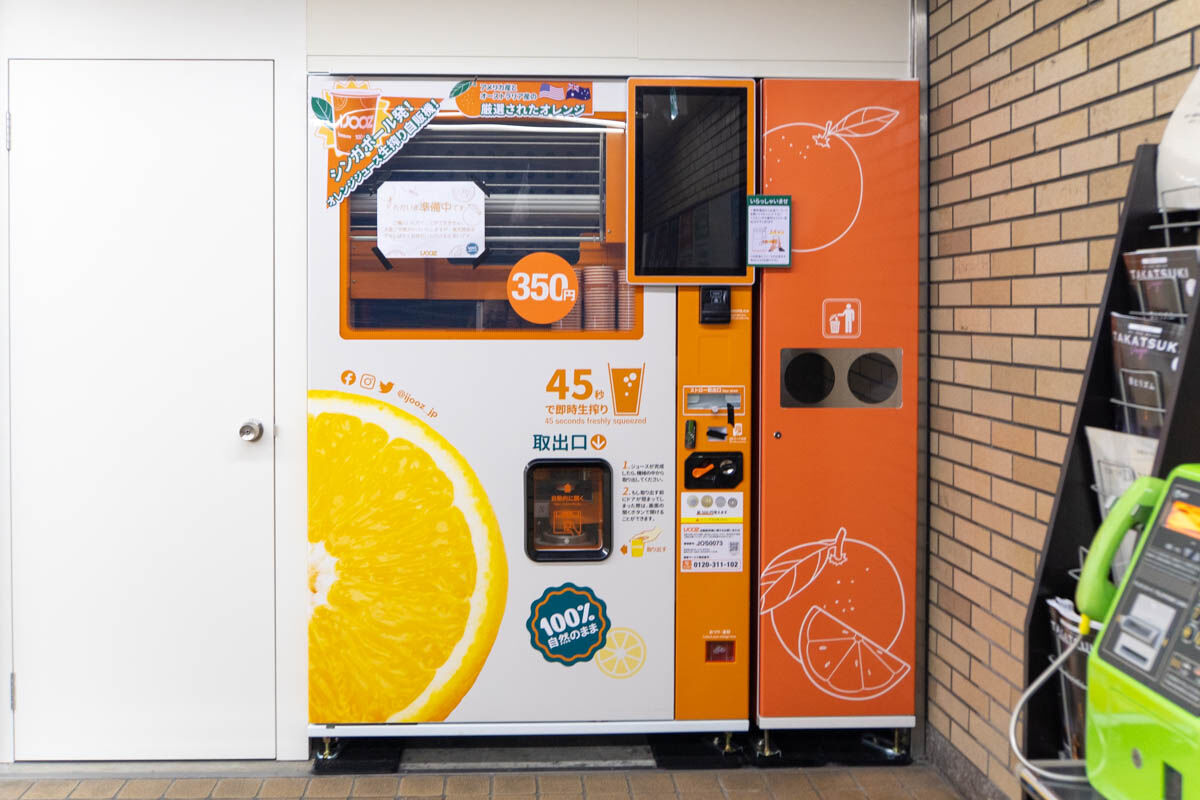 阪急富田駅に生搾りオレンジジュースの自販機ができています。