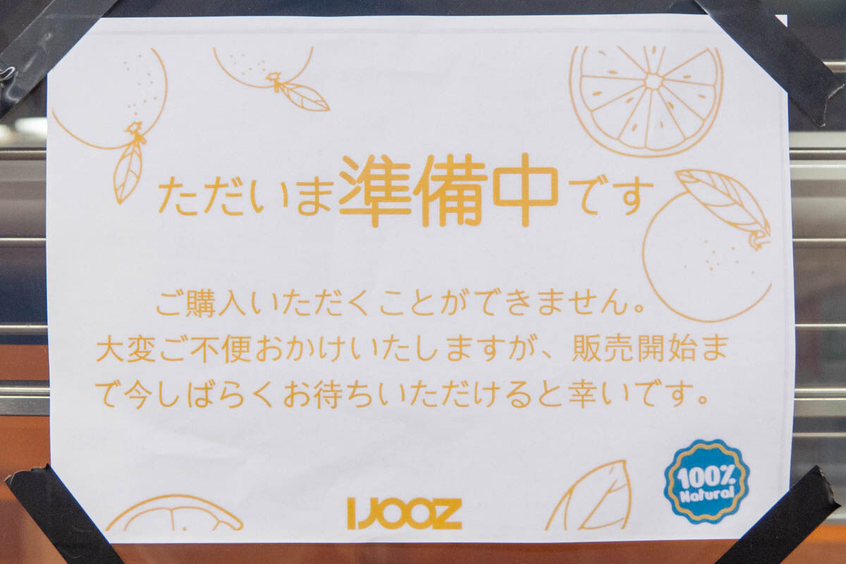 阪急富田駅に生搾りオレンジジュースの自販機できてる。まだ準備中
