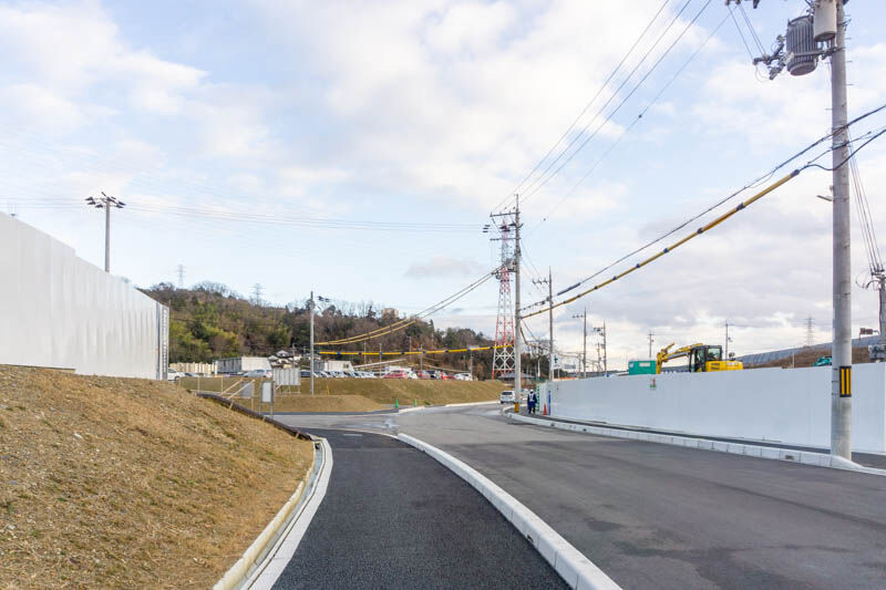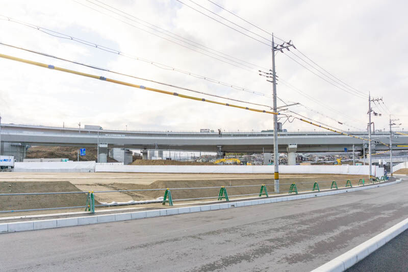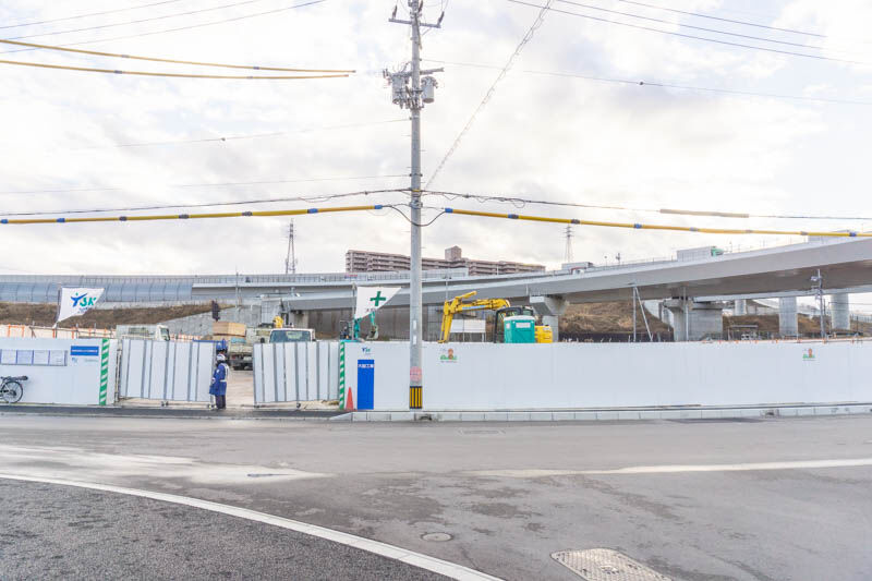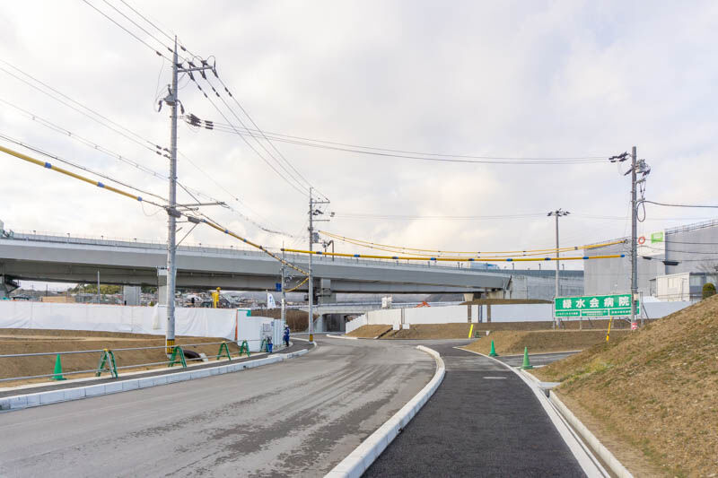 向かいには緑水会病院や建設中の「長浜製作所」があり、こっちに行って高速道路の高架下をくぐると、成合東の町の方面。