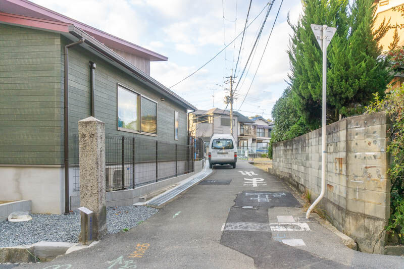 こっちに行って突き当りを右へ行くと、以前のにこにこ保育園や三島高校などの方面。