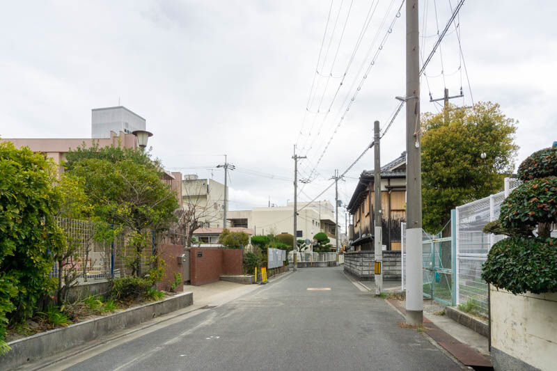 こっちに行って住宅街を抜けると、阪急京都線の線路沿いに。突き当たりを右に曲がると阪急富田駅の方面。