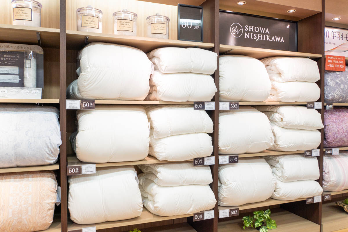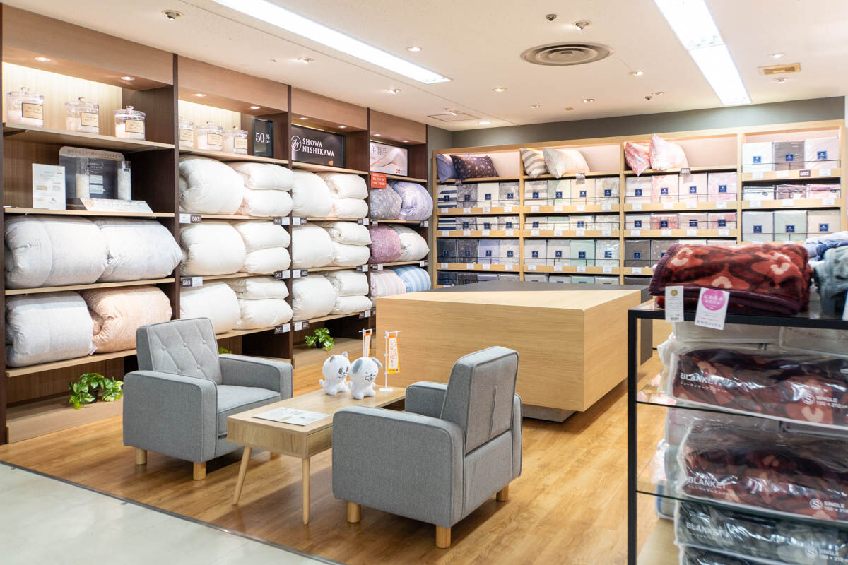 高槻阪急スクエアに「昭和西川」って寝具店ができてる。店内はこんなかんじ