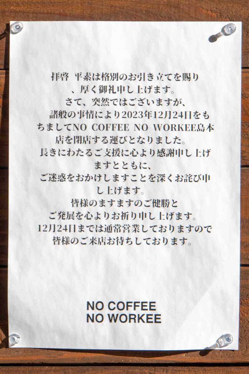 水無瀬駅ちかくの「NO COFFEE NO WORKEE」が閉店してる