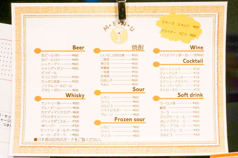 ビール、焼酎、ウィスキー、カクテルやフローズンサワーなんかもあるみたい。ソフトドリンクも各種あるのがいいですね。