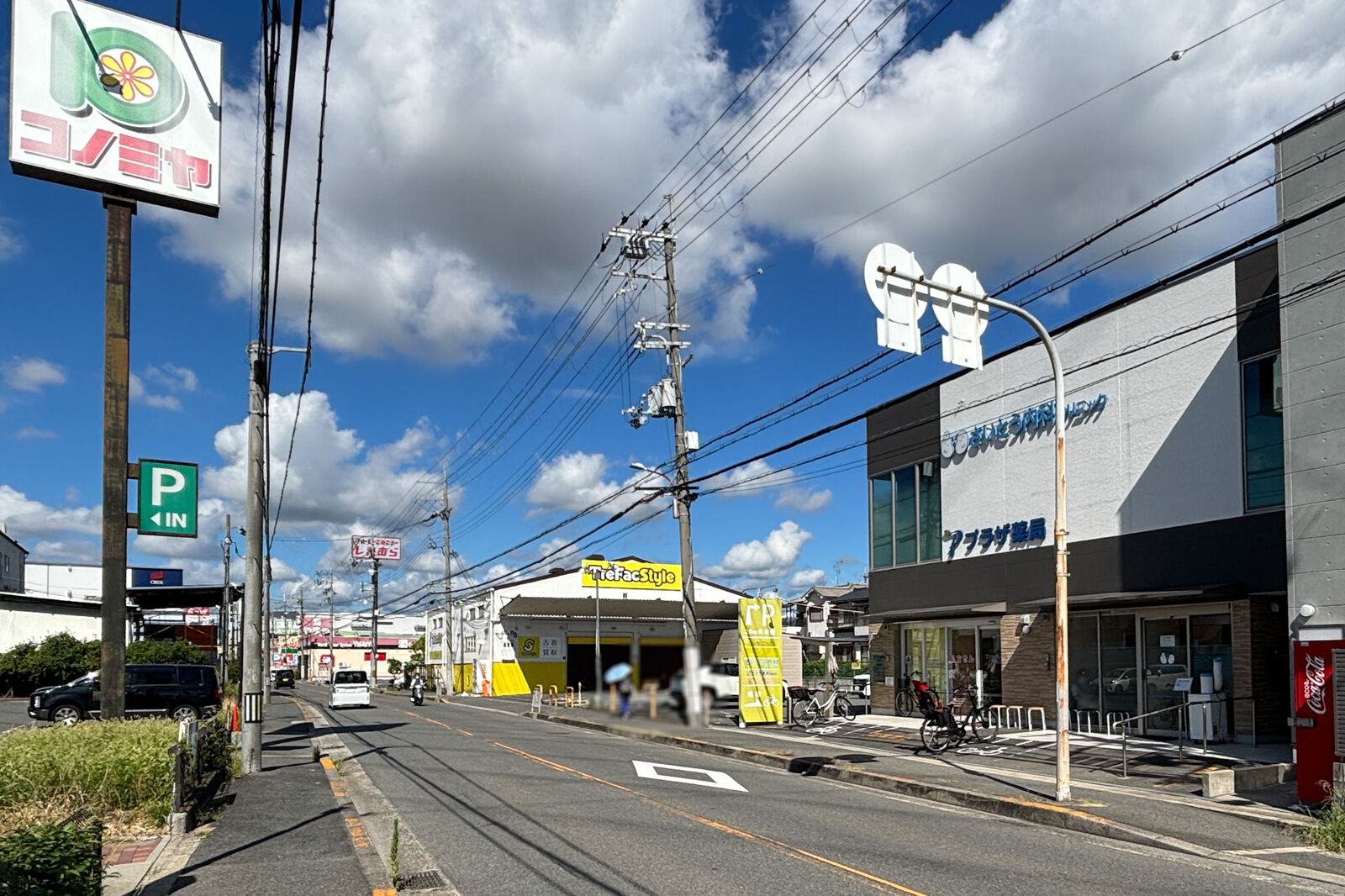 目の前には「コノミヤ」があり、こっちの方面へ行くと「しまむら」や「トレファクスタイル」などがあります。