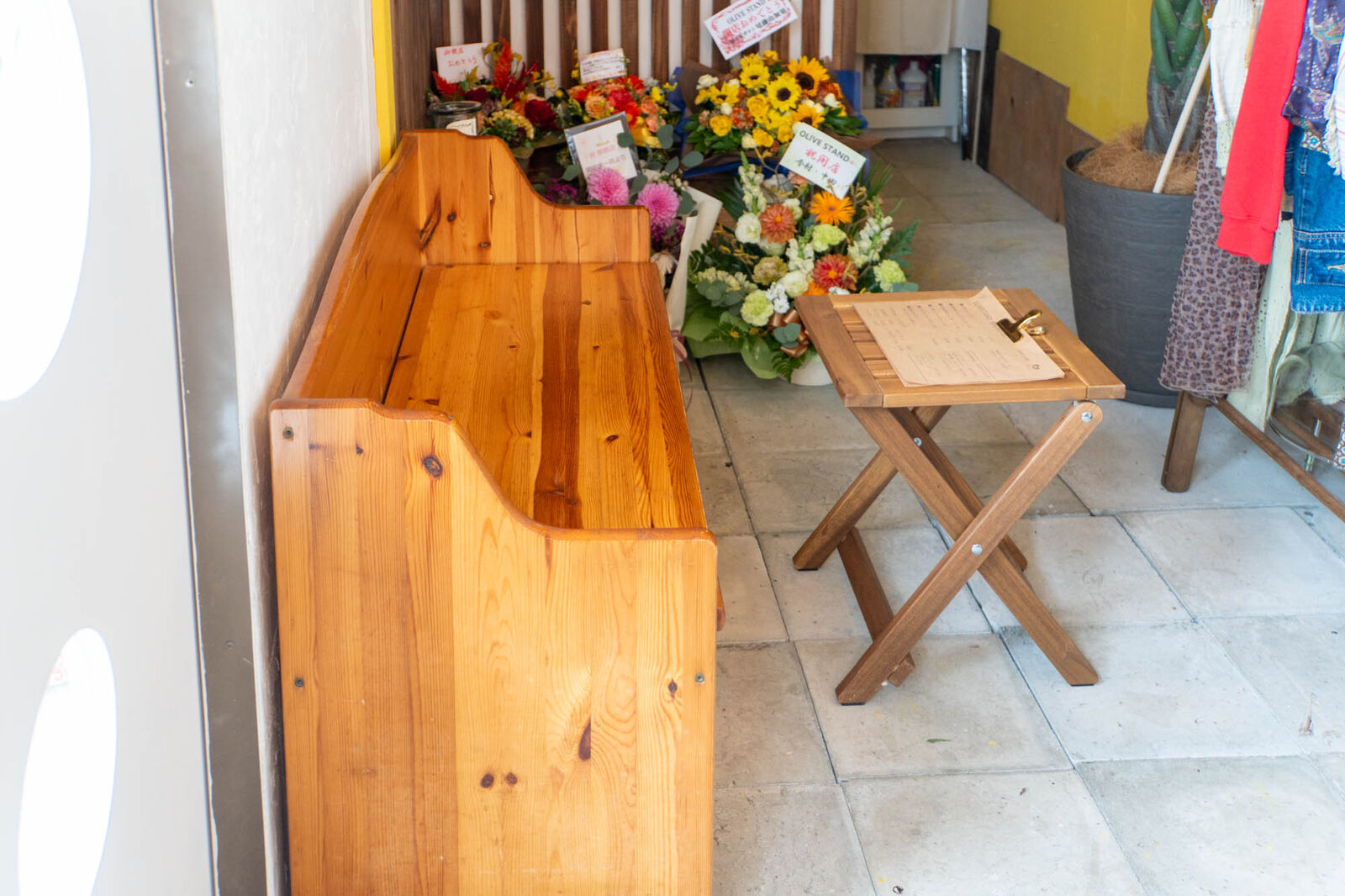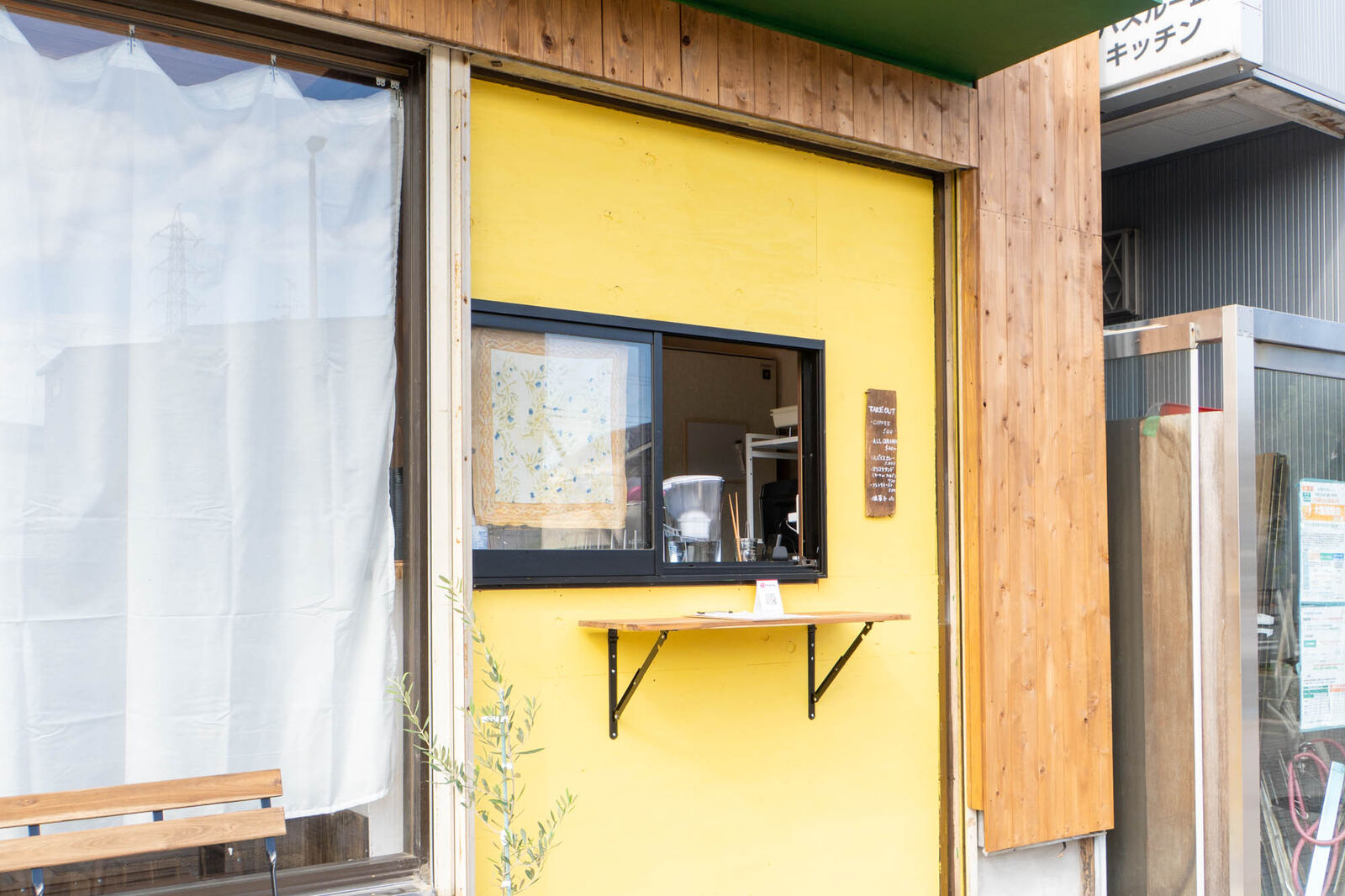 テイクアウトは黄色の壁が映えるかわいい窓口から。