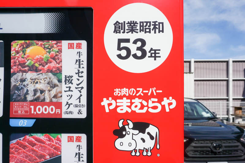 「お肉のスーパーやまむらや」が展開しているこちらの自販機は、高槻で確認できているのは2つ目ですが近隣の枚方や寝屋川でも設置が進んでいるよう。