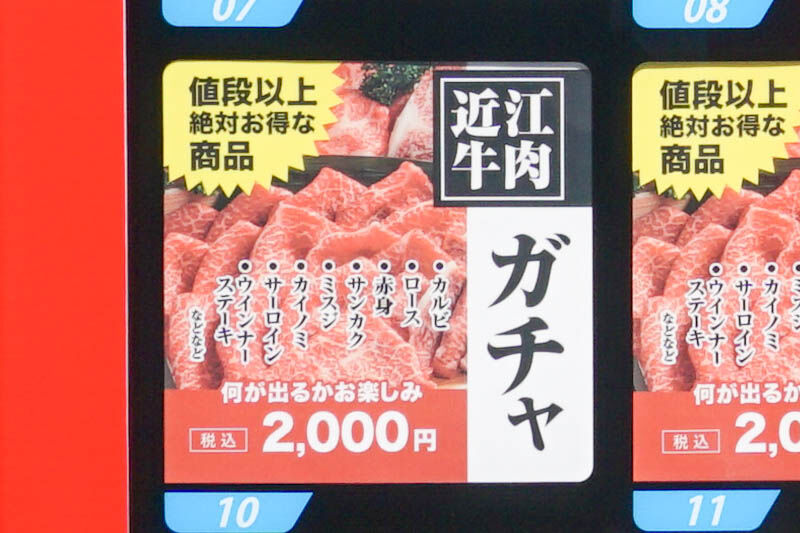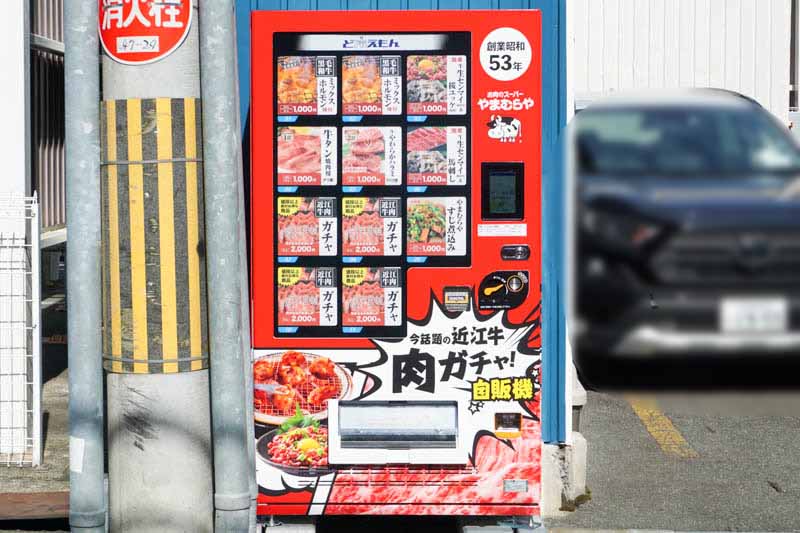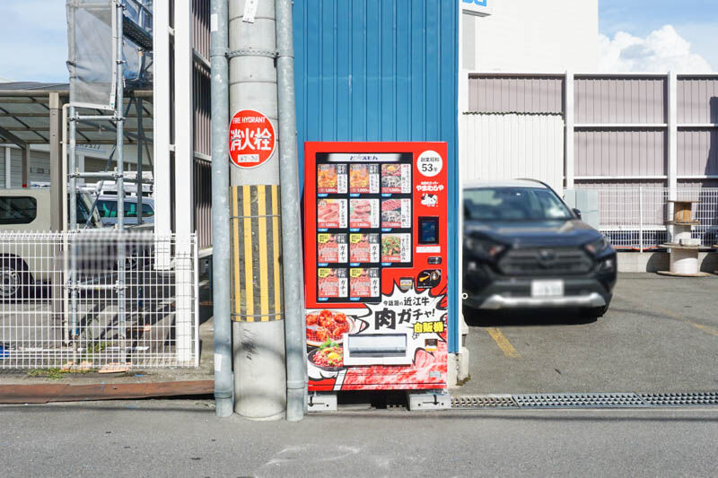 今城町に肉の自販機が設置されてる。ガチャ要素つき