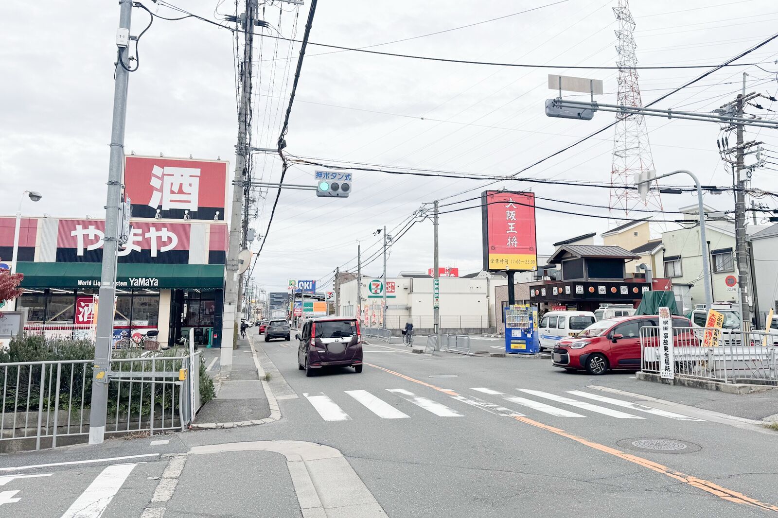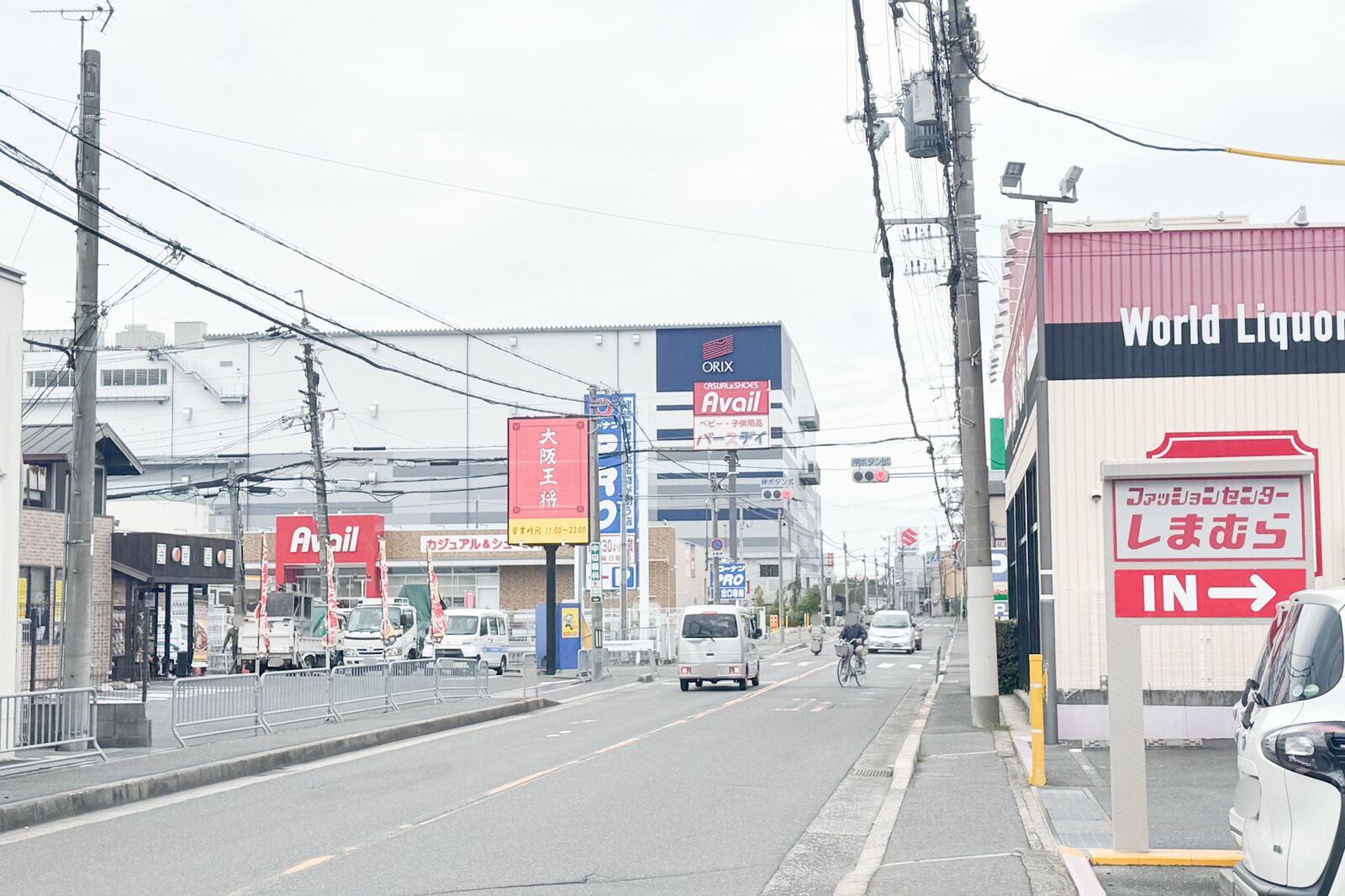 反対方向にいくと、コーナンPROや業務スーパーがあり、府道16号線へ。