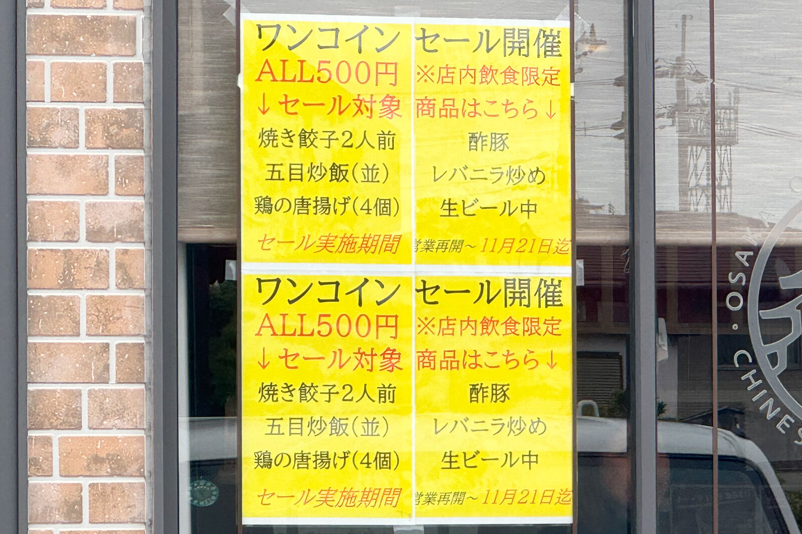 6月に一度閉店した「大阪王将 高槻南店」が営業再開することは前にも記事にしています。