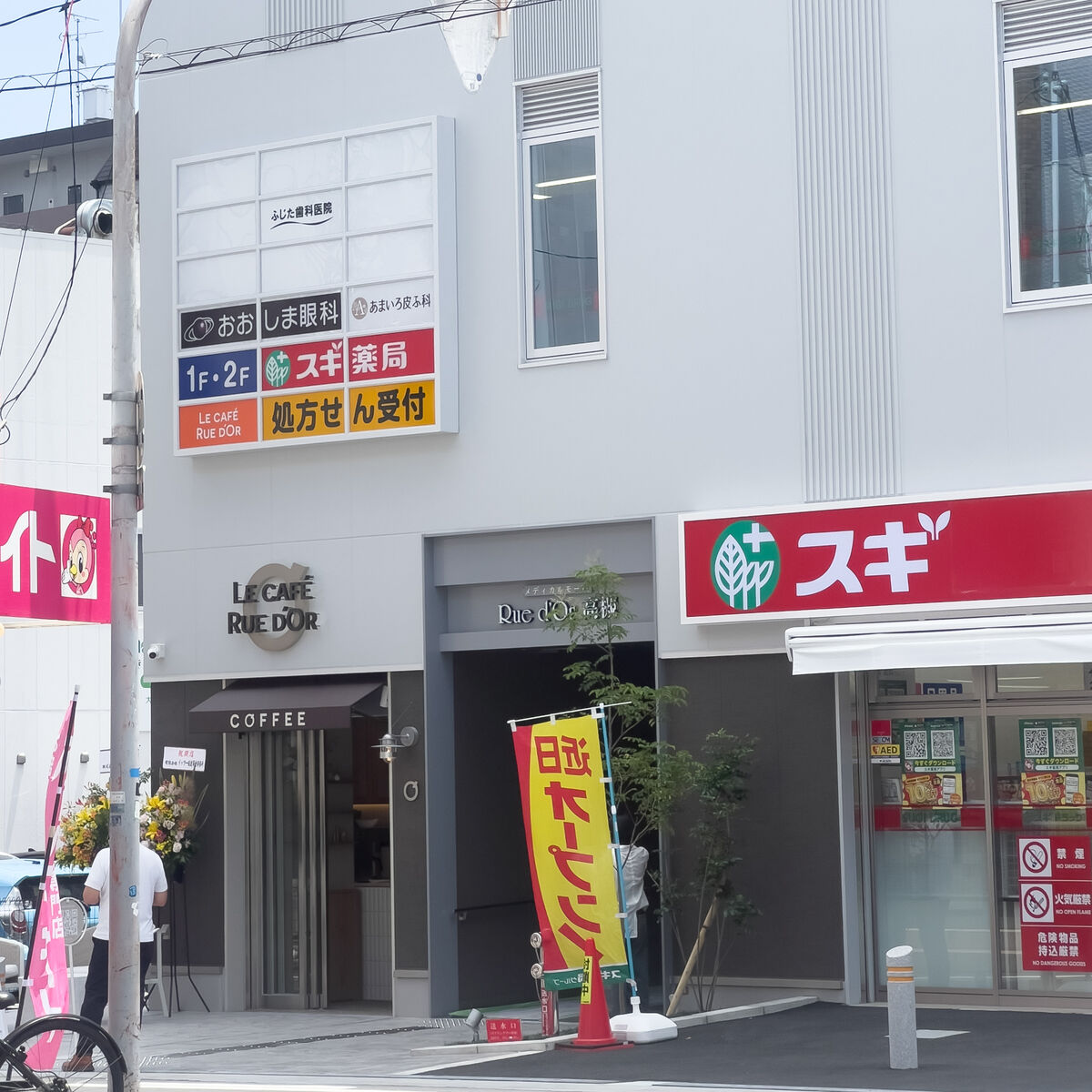 このビルには「おおしま眼科クリニック」の移転や、「Le Café Rue d’Or(ル・カフェ リュ・ドール)」「スギ薬局」「あまいろ皮ふ科」などが入る予定でそれぞれ記事に。