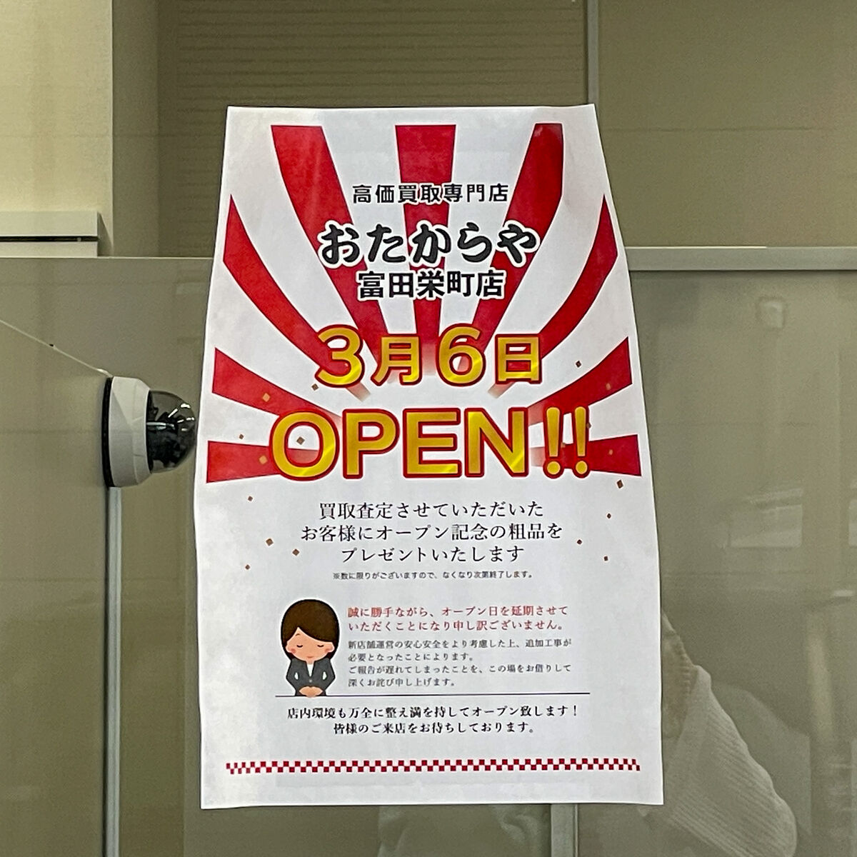 「おたからや 富田栄町店」は3月6日にオープンしたようです。