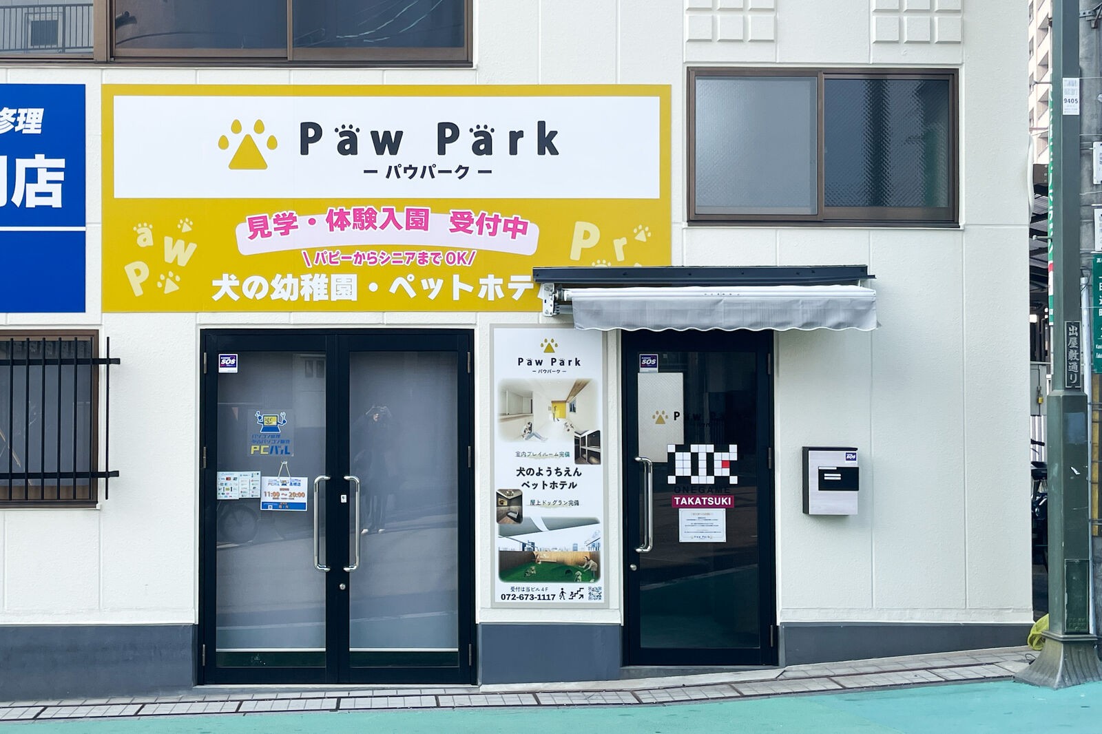 「Paw Park(→公式サイト)」は犬の幼稚園として関東などにも展開しており、関西エリアでは2024年4月にオープンした「阪急高槻店」と「JR高槻店」の2店舗の模様。