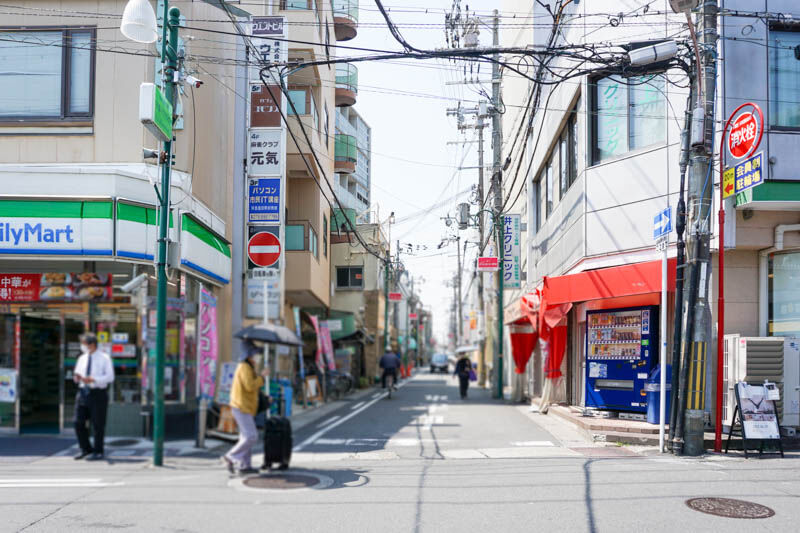 ファミリーマート側からみた感じ。この道を入っていって左手にあります。