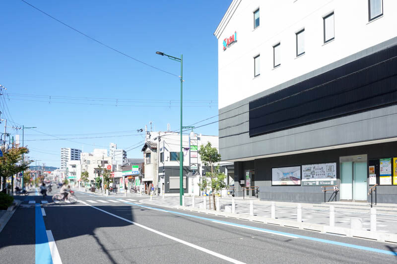 写真では写っていませんが道路を挟んだ向かいは「おみやげ処 笹井屋」があり、こっちに行くと昨年オープンしたファミリーマートなどがあり阪急の踏切を越えて行くとJR摂津富田駅方面。