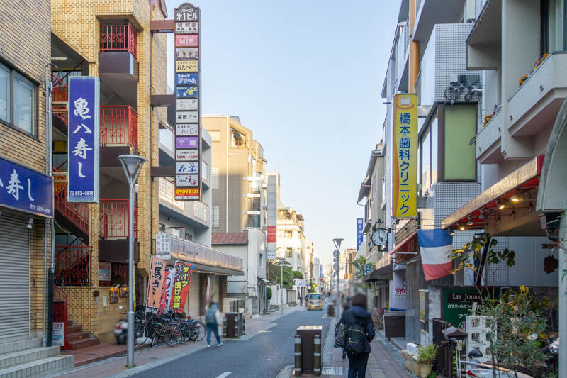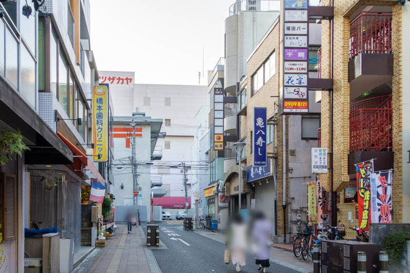 こっちに行くと、郵便局や松坂屋があり、JR高槻駅方面。