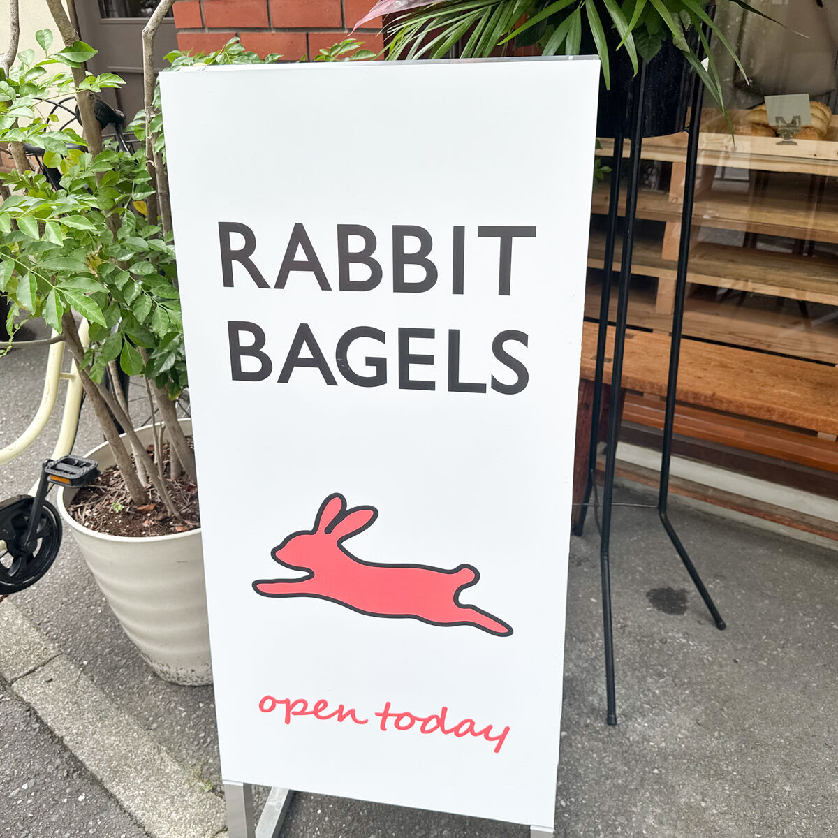 上田辺町につくってた「RABBIT BAGELS(ラビットベーグル)」がオープンしてる。大阪初出店。行列できてた