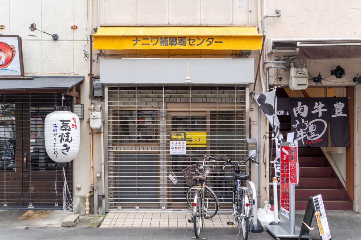 写真で分かるように、ここには以前「ナニワ補聴器センター」があった模様。