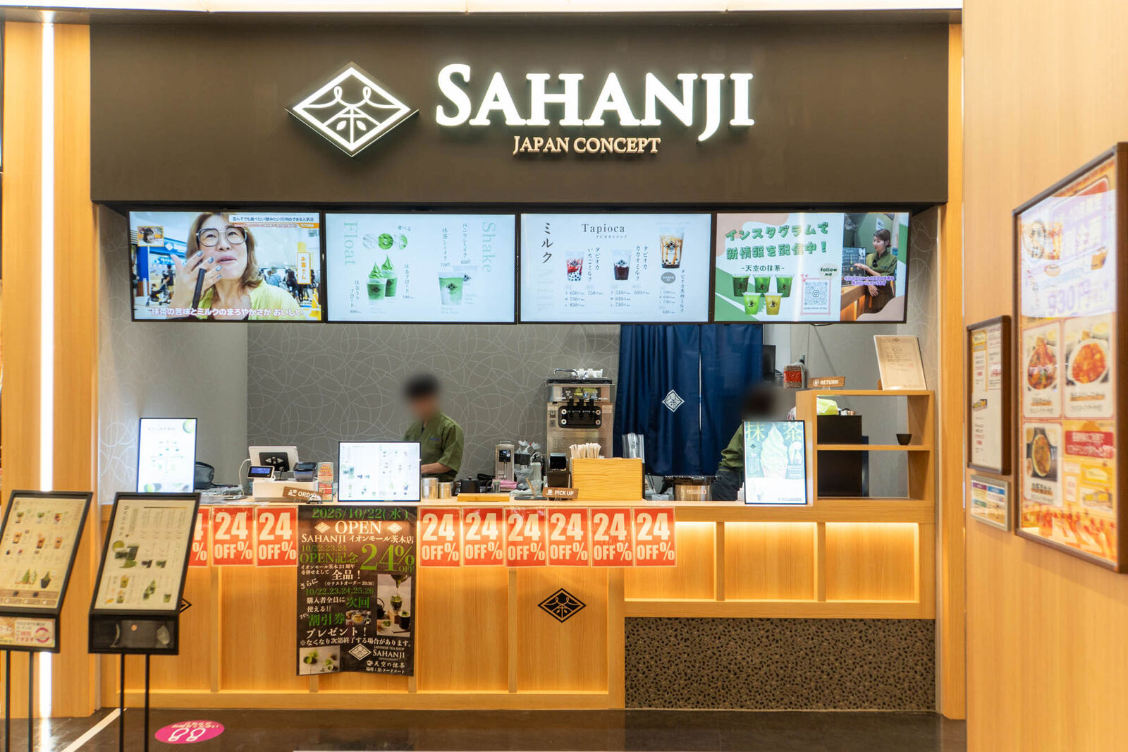 イオンモール茨木につくってた抹茶ドリンク&スイーツ店「SAHANJI」がオープンしてる