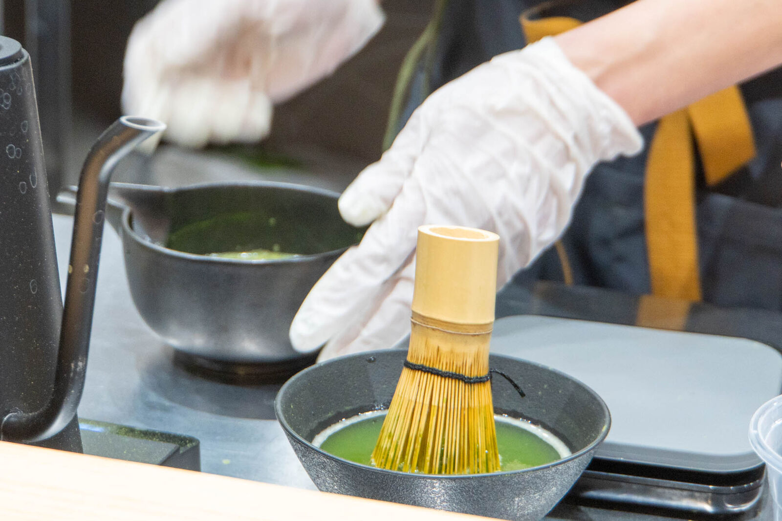 目の前で抹茶を点てている様子もみることができますよ〜!