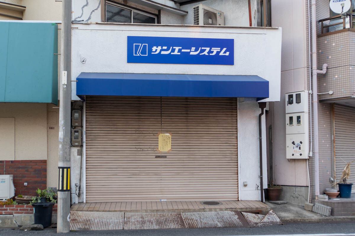 府道132号線ぞい富田町の「サンエーシステム」が閉店してる