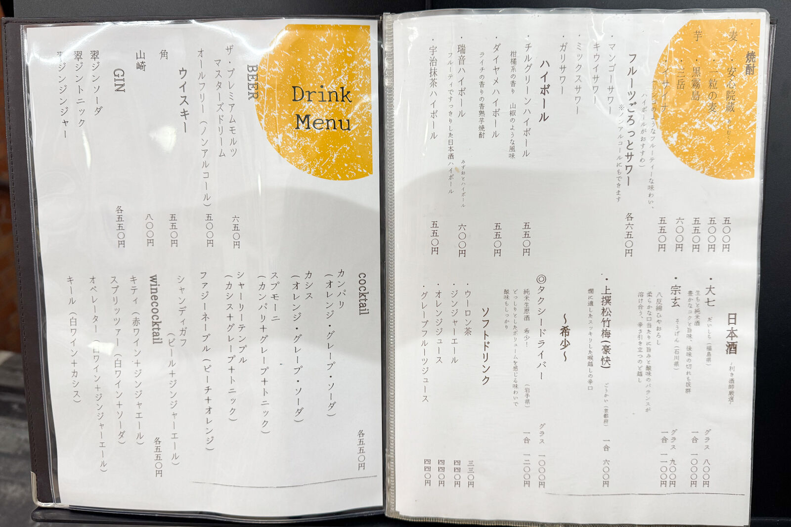ドリンクメニュー↓