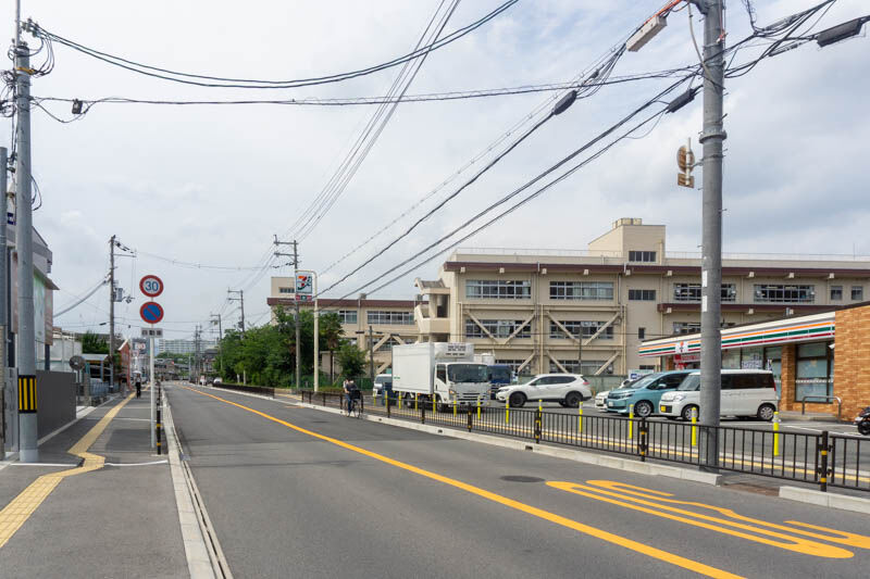 こっちに行くと、三島小学校やイオンタウン茨木太田、追手門学院大学などがある方面。