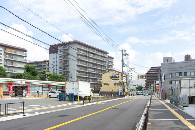 反対方向に行くと、大阪行岡医療大学などがり、阪急総持寺駅方面。